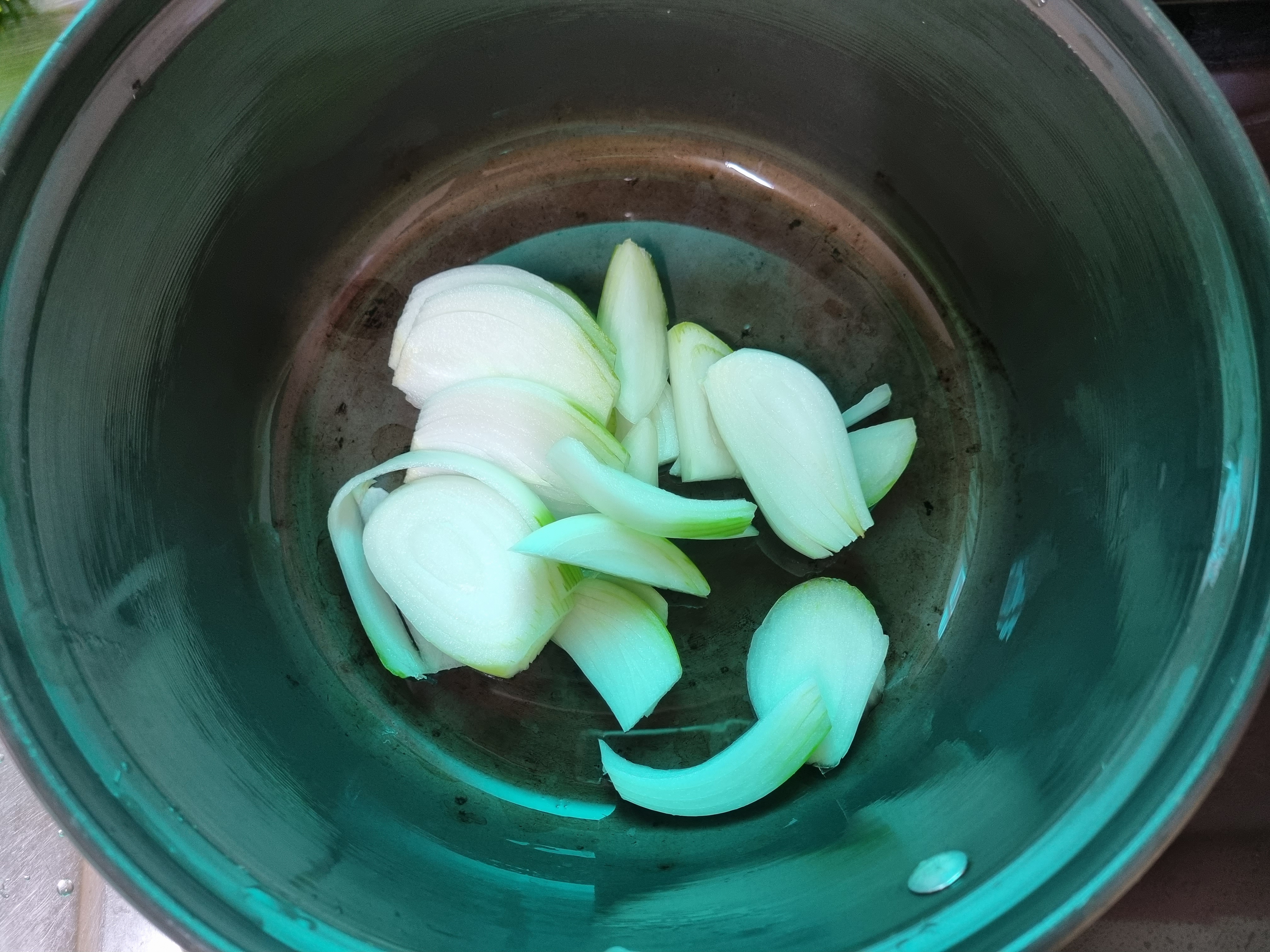 양파를 채 썰어서 냄비에 넣어줍니다.