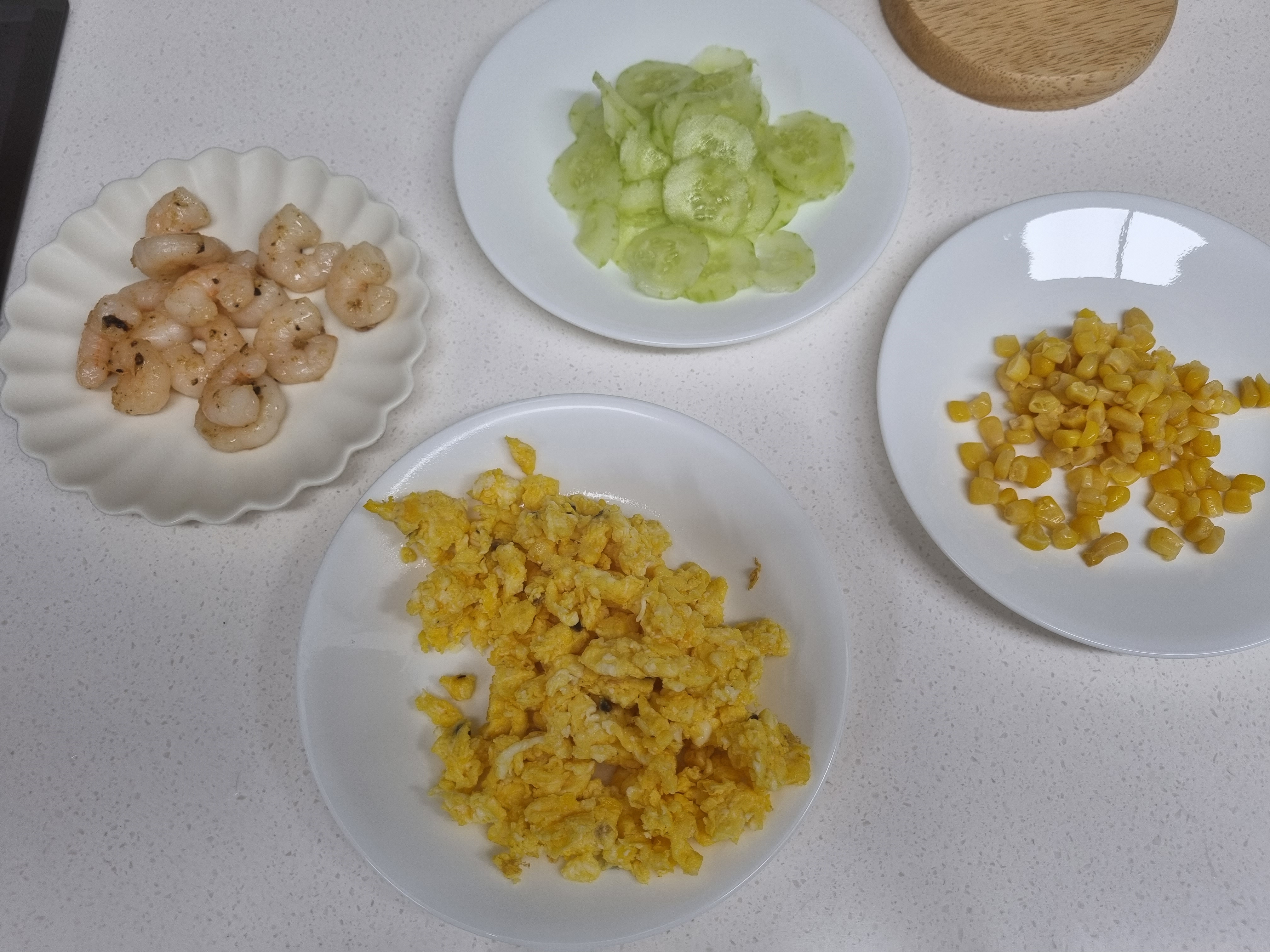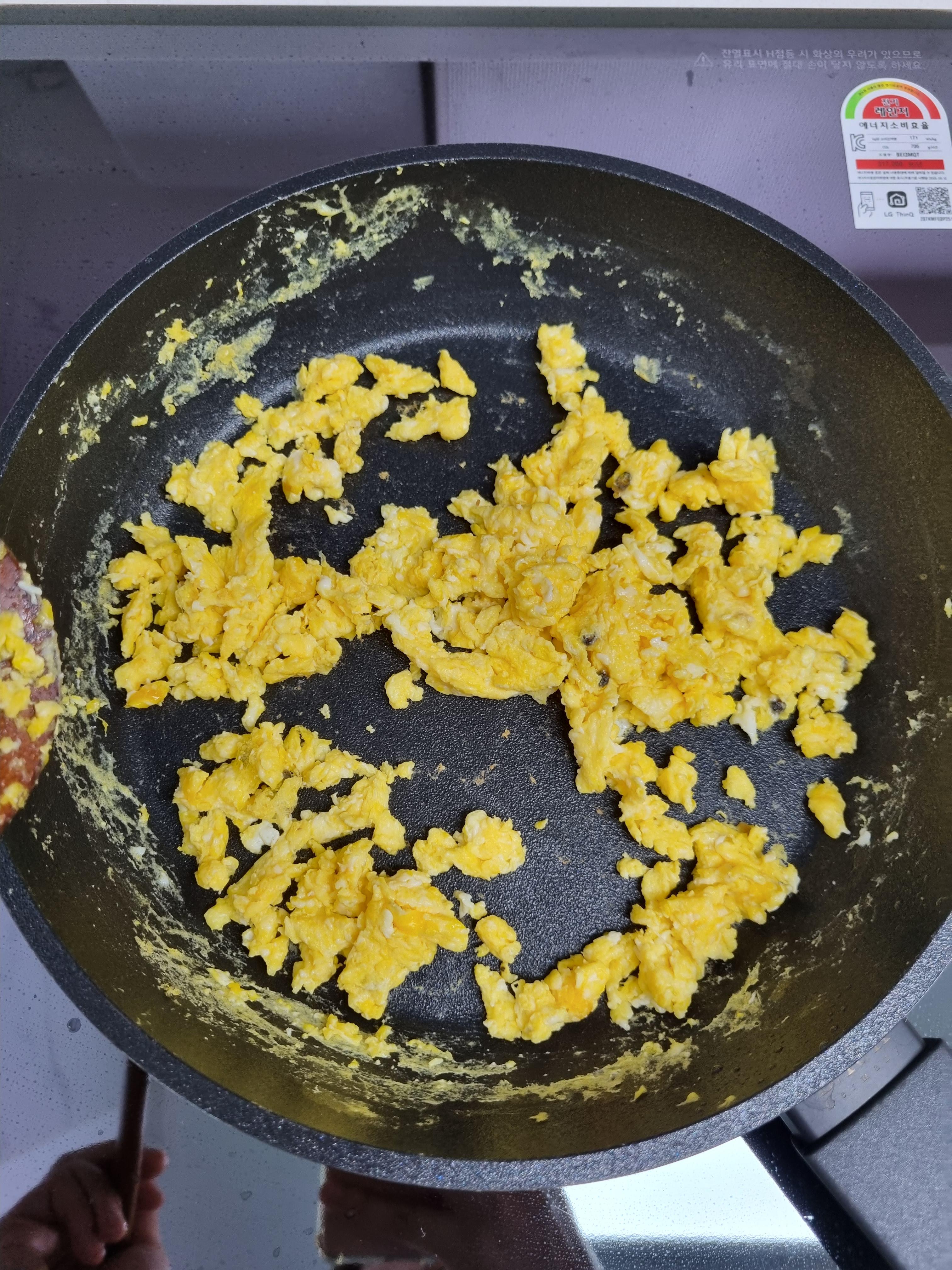 새우만 넣으면 단백질이 조금 부족할 거 같아서 계란 스크램블도 해줍니다.