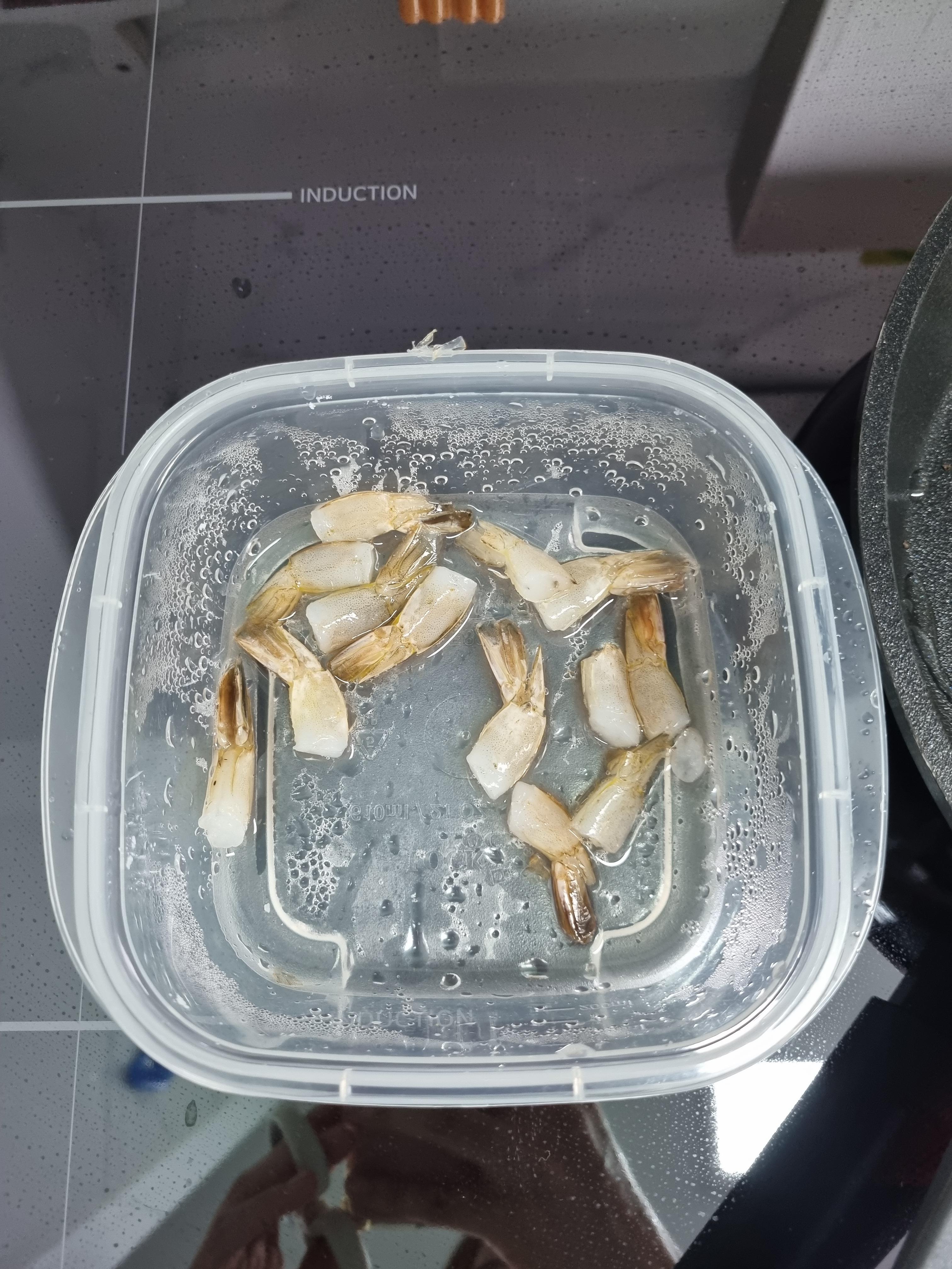 새우포케 만들기 3시간 전에 냉동새우를 잠시 해동시켜줬어요